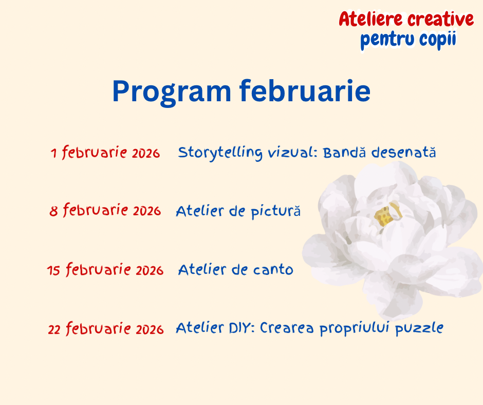 În fiecare săptămână vom experimenta o nouă formă de artă și ne vom axa pe dezvoltarea unei alte abilități – de la creativitate și comunicare, la coordonare, empatie și gândire liberă.